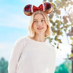 Disney Minnie Mouse Sequin Ear Headband With Sequin Polka Dot Bow For Adults