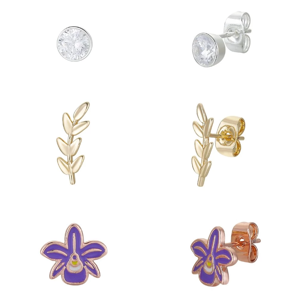 A purple orchid captures the lush Colombian mountain setting of Disney’s Encanto. With its rose gold setting, it’s one of the three different pairs of earrings in this set that can be mixed and matched to suit any occasion and outfit.