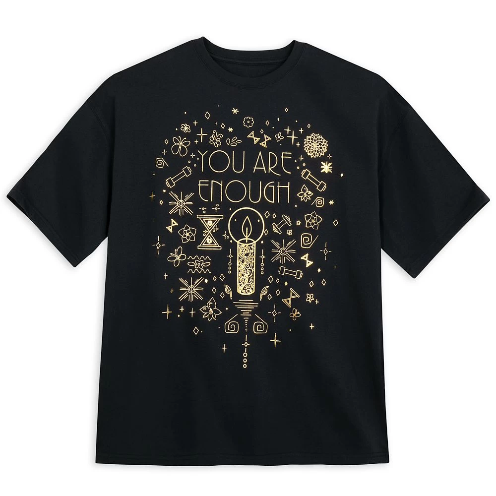 ”You are enough” to fill this glittering drop shoulder fashion tee with the spirit of the season and beyond. Golden foil graphics elevate the look of this fine fashion tee inspired by Disney’s Encanto.