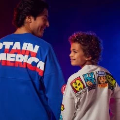 They’ll heat up the action day or night when wearing this heroic heathered Spirit Jersey with mighty Marvel logo on chest and kawaii Avengers art on back and sleeve. Puffy ink Captain America, Iron Man, Hulk and Thor assemble to top any ensemble.