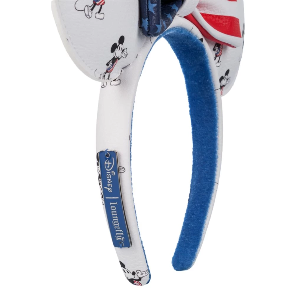 Three cheers for the red, white, and blue bow on this simulated leather Minnie Mouse ear headband by Loungefly. With its patriotic Mickey pattern, it’s a stirring keepsake to honor America for ”ears” to come. Wear with pride!