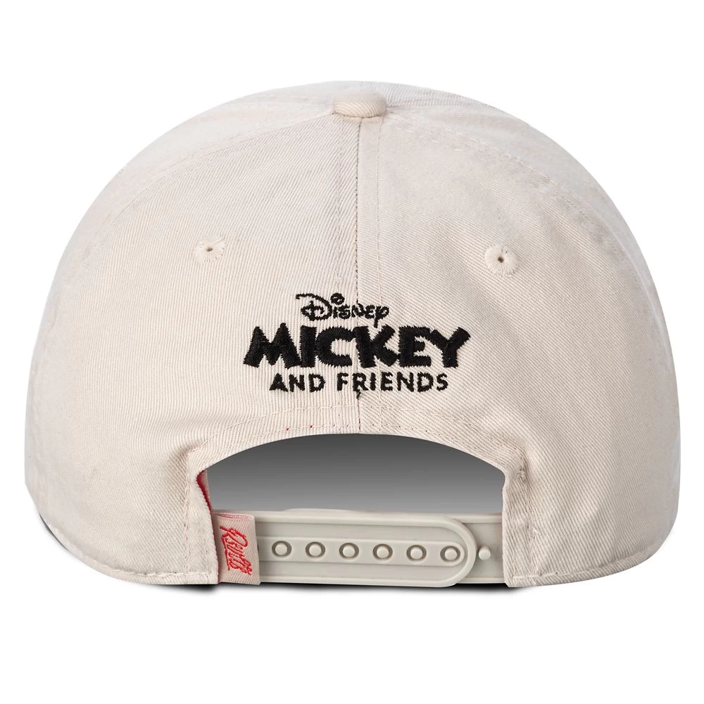 Sweethearts Mickey and Minnie are paired together on the front of this cotton baseball cap from RSVLTS. The classic twill design also includes ”Disney Mickey and Friends” embroidered on the back of this timeless classic that includes an adjustable back strap.