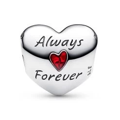 - Engraved ”Always + Forever” text, plus red enamel heart with the ”+” visible beneath
