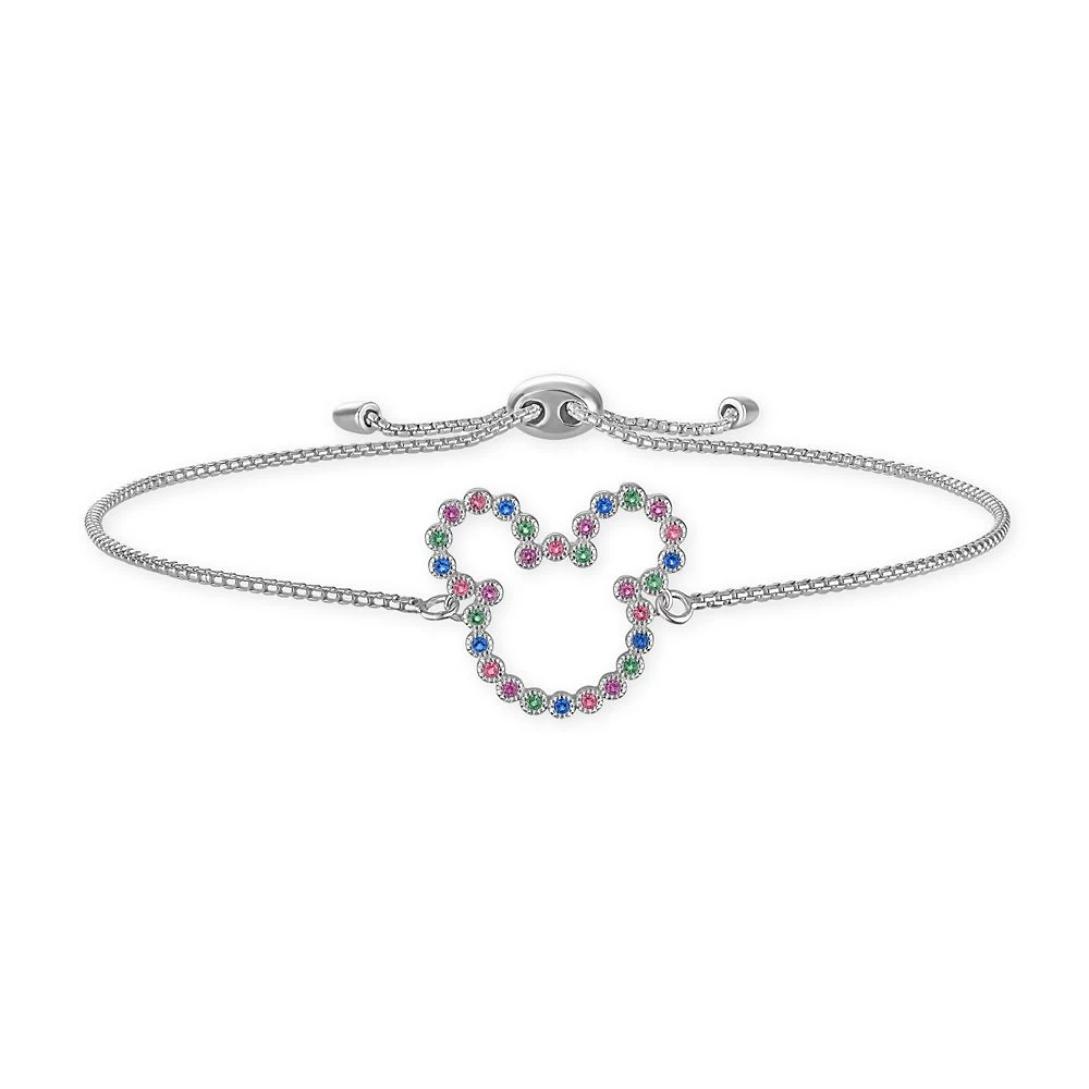 Every sparkle is worth a thousand smiles with this Mickey Mouse icon bracelet by Rebecca Hook. Beautifully crafted in sterling silver, the bolo-style bracelet features blue, green, pink, and purple nano gems. Adjustable to assure a perfect fit, it makes a wonderful gift for someone you love or a special treat for yourself.