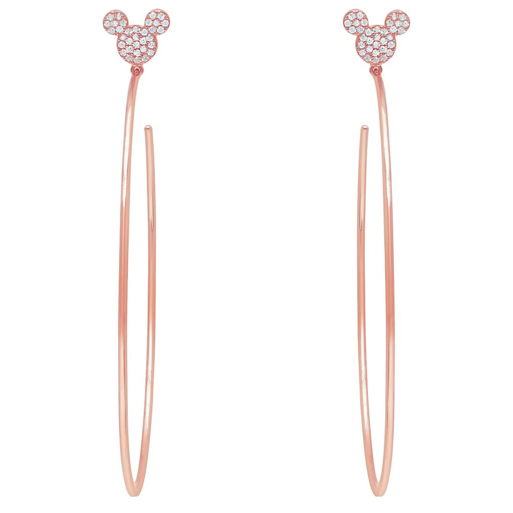 You’ll be able to hoop it up with Mickey when you wear these dazzling earrings by CRISLU. Fashioned in sterling silver with an elegant 18K rose gold finish, these large hoop earrings feature a Mickey icon encrusted with sparkling cubic zirconia.
