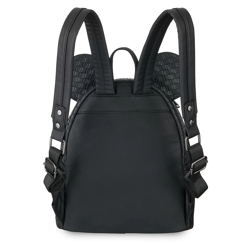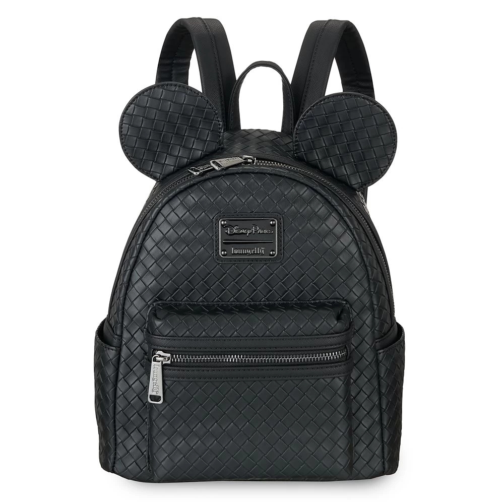 This dramatic black mini backpack is perfect for stowing all your on-the-go essentials. Featuring an allover woven design in simulated leather, this Loungefly bag is accented with 3D Mickey Mouse ears, a front zip pocket, and large main compartment.