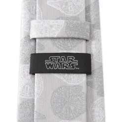 Your inner fashion rebel will take flight with this gray silk tie featuring the Millennium Falcon. Han Solo’s legendary Corellian spaceship is woven into the allover design of this elegant Star Wars tie.