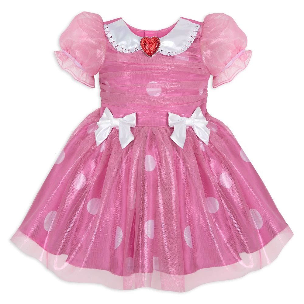 Baby takes the spotlight as our leading lady in this delightful Minnie Mouse bodysuit costume. Animated dreams are brought to life by the satin polka dot dress with puffed sleeves and metallic mesh overlay. A lace collar, iridescent bows and sparkling heart-shaped brooch will make your Minnie everyone’s new sweetheart.