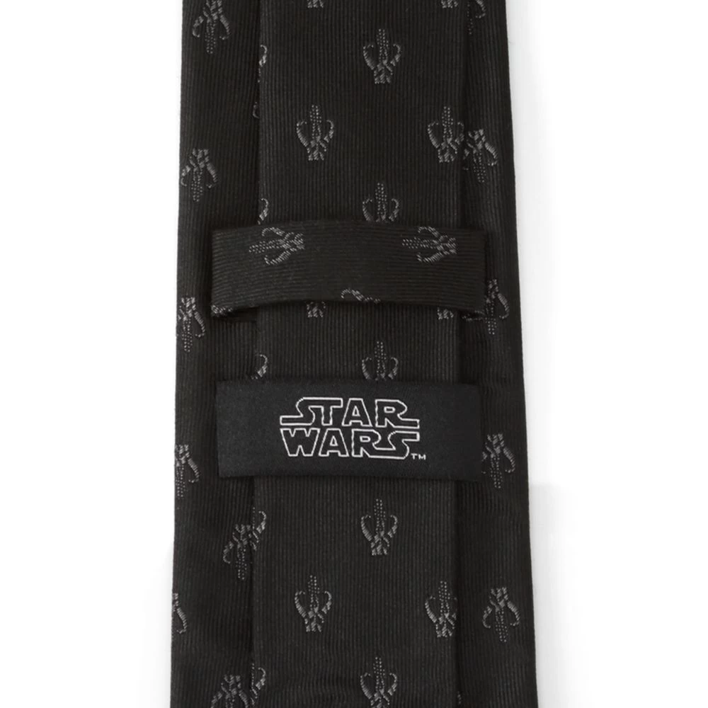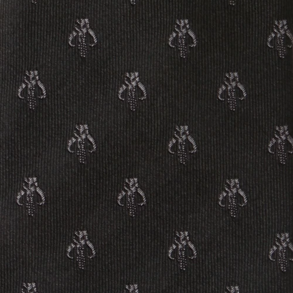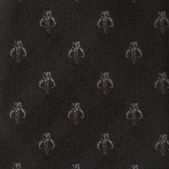 A woven gray Mythosaur skull pattern offers a subtle contrast to the black of this silk tie while making an epic style statement. The tuck loop in back features the Star Wars logo.