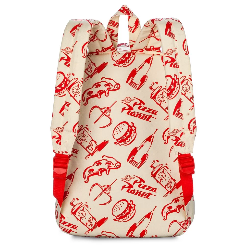- Allover Pizza Planet print includes Space Crane game, The Claw, pizza slices, Pizza Planet logo, and burgers*