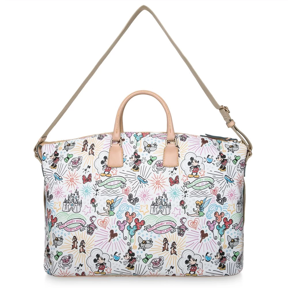 Get away for fun times with this strapping luggage by Dooney & Bourke. Mickey’s fine fashion tote with colorful Magic Kingdom styling comes to you direct from the Disney Parks and the designer label you love.