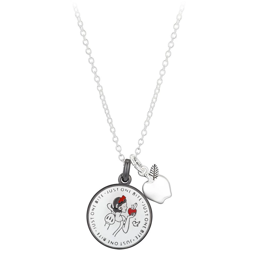 It’s hard to resist this Snow White Necklace featuring a tempting apple. Inspired by Disney’s first full length animated classic, one pendant shows the original Disney Princess contemplating ”Just one bite” while a second is the alluring fruit.