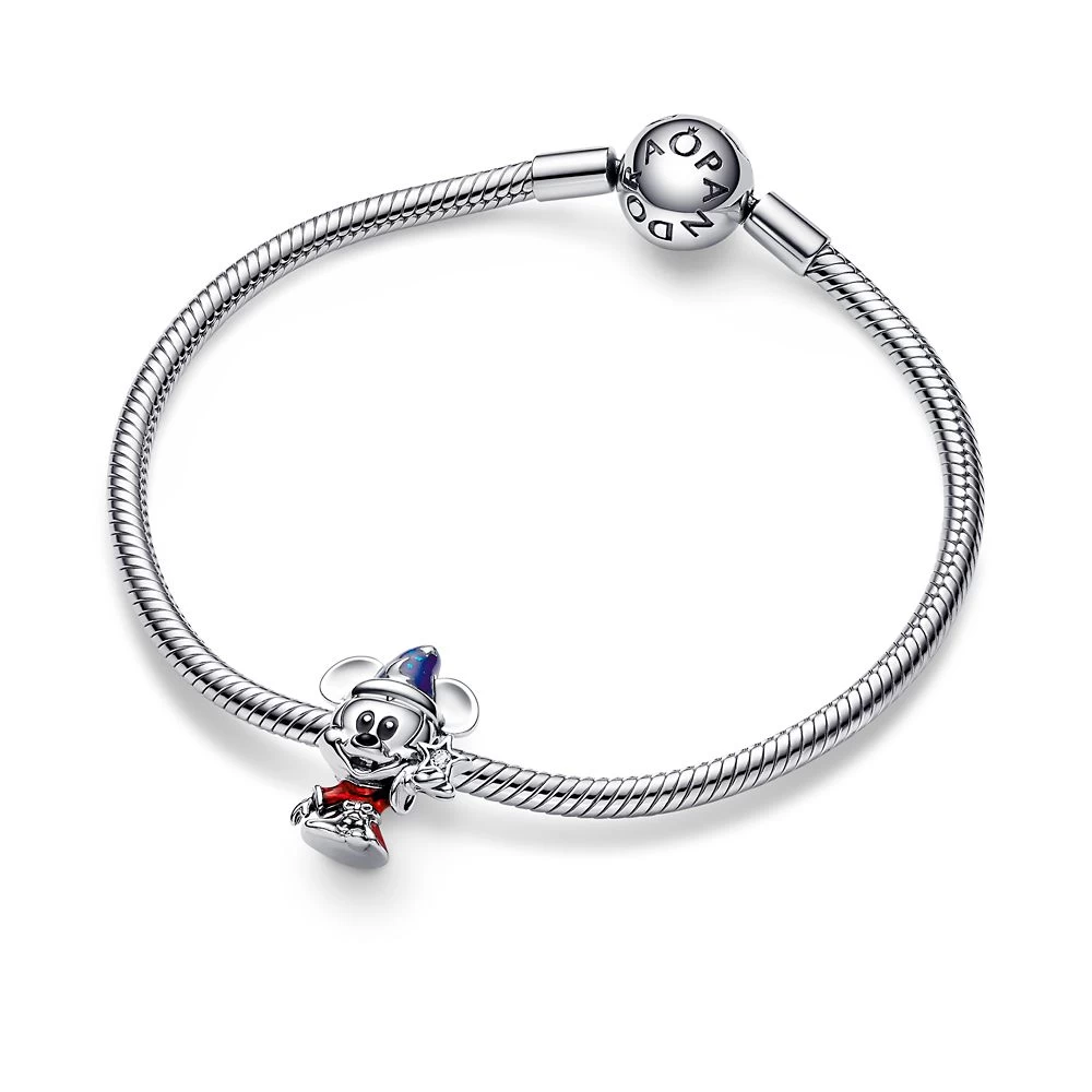 One of Disney’s most beloved characters returns with Mickey Mouse as The Sorcerer’s Apprentice. This bewitching charm from Pandora features hand-applied glittery enamel details and shining star motifs inspired by Walt Disney’s classic Fantasia. Mickey is even holding a round cubic zirconia set in a star, a sparkling reminder of the magic that’s never far away. Wear on its own or as a playful pop to your favorite everyday styling.