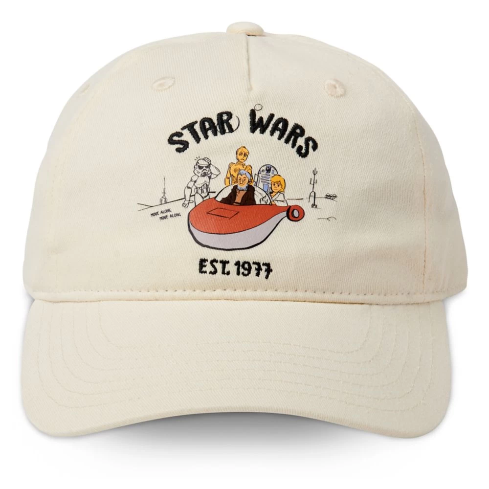 ”Move along. Move along.” This Star Wars baseball cap celebrates the scene in Episode IV: A New Hope when Obi-Wan Kenobi performs a sweet Jedi mind trick on a Stormtrooper on the way to the Mos Eisley cantina with Luke Skywalker, C-3PO and R2-D2. Featuring stylized screen art and embroidered details, this hat is an instant, and very handsome, fan favorite that is sure to accentuate your own ”cap-tivating” powers.