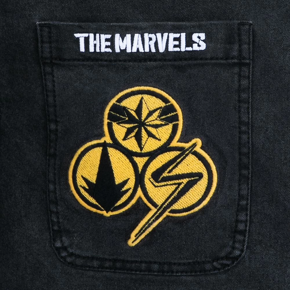 - Chest pocket features embroidered Captain Marvel, Ms. Marvel and Monica Rambeau symbols