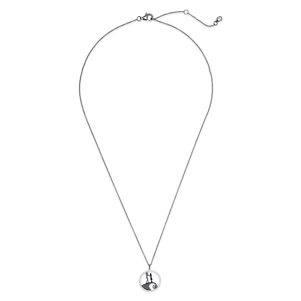 Jack Skellington and his sweetheart Sally share a romantic moment atop Spiral Hill on this necklace by CRISLU. Inspired by Tim Burton’s The Nightmare Before Christmas, the elegant design is fashioned in sterling silver and circled with dazzling cubic zirconia.