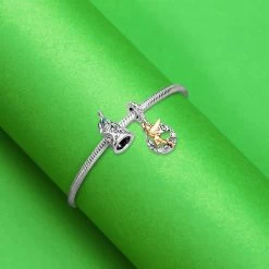 Add a pinch of pixie dust to your everyday doings with our Tinker Bell Celestial Thimble Charm from Pandora. This sterling silver charm sets an enchanting scene with hand-applied green enamel details and brilliant-cut blazing yellow simulated crystals. Style it with other green and yellow charms for a nostalgic tribute to Tinker Bell and childhood memories forever remembered.