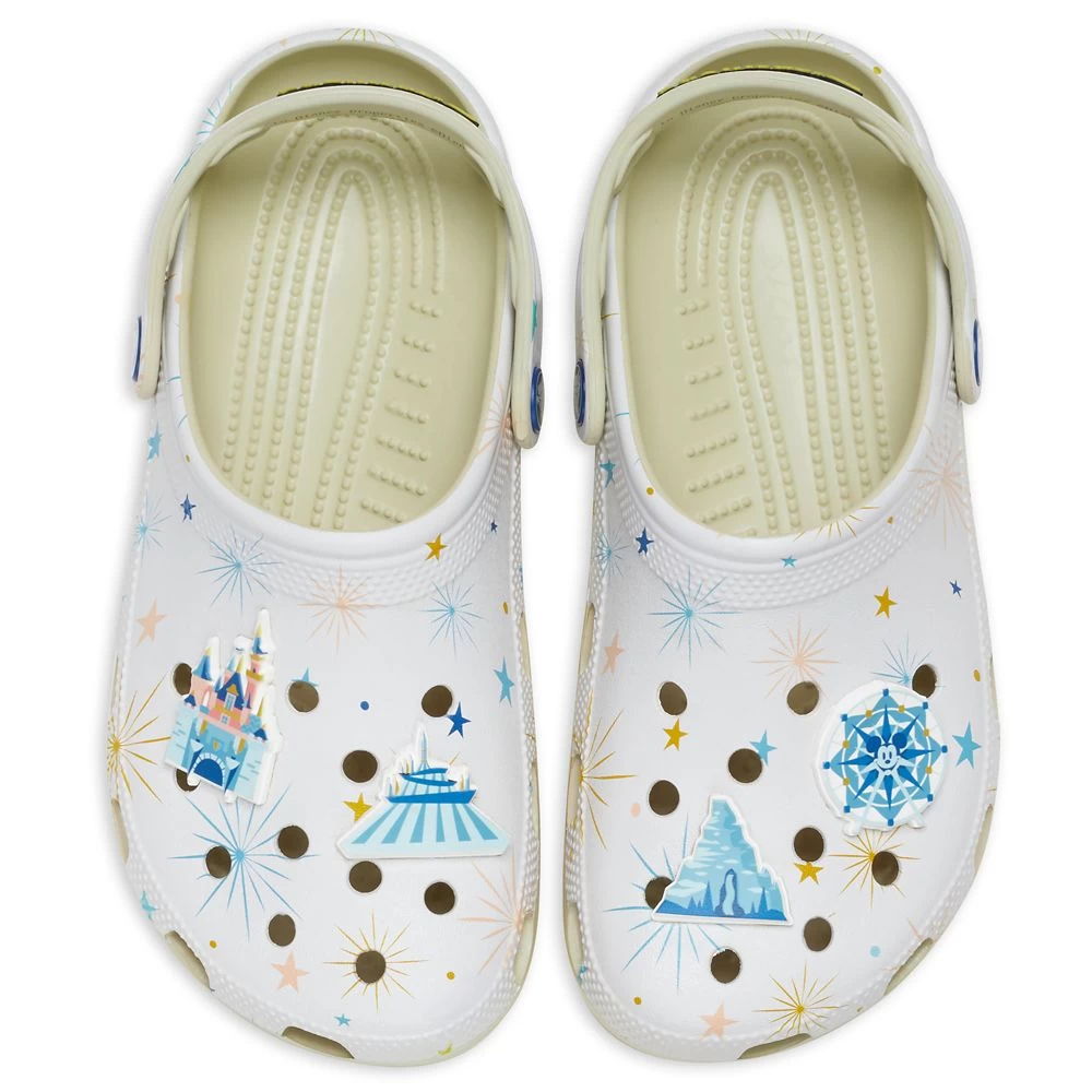 Step into the splendor of The Happiest Place on Earth at home or on-the-go with these colorful and comfortable lightweight clogs featuring molded resort icons including Sleeping Beauty Castle, Matterhorn Bobsleds, Space Mountain and Pixar Pal-A-Round, plus classic Disneyland logo on the strap. It’s almost like being there!