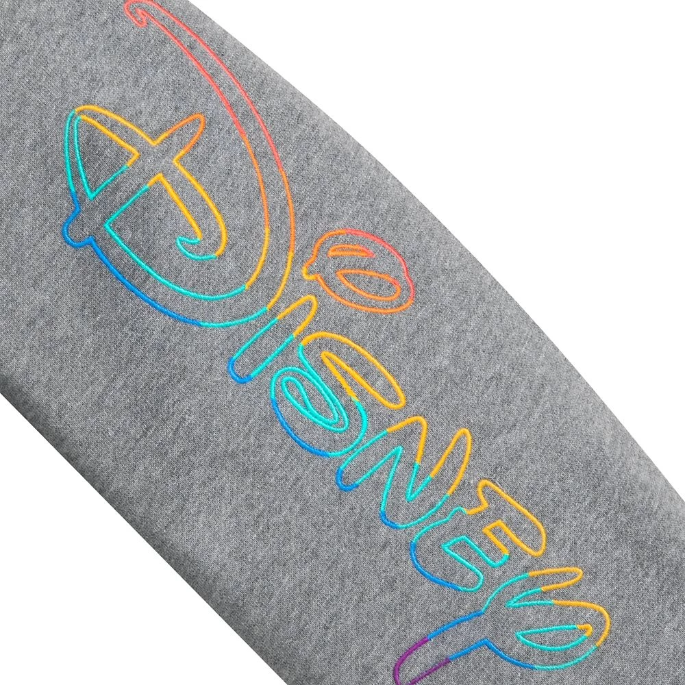 - Embroidered Disney logo in rainbow hues on left sleeve