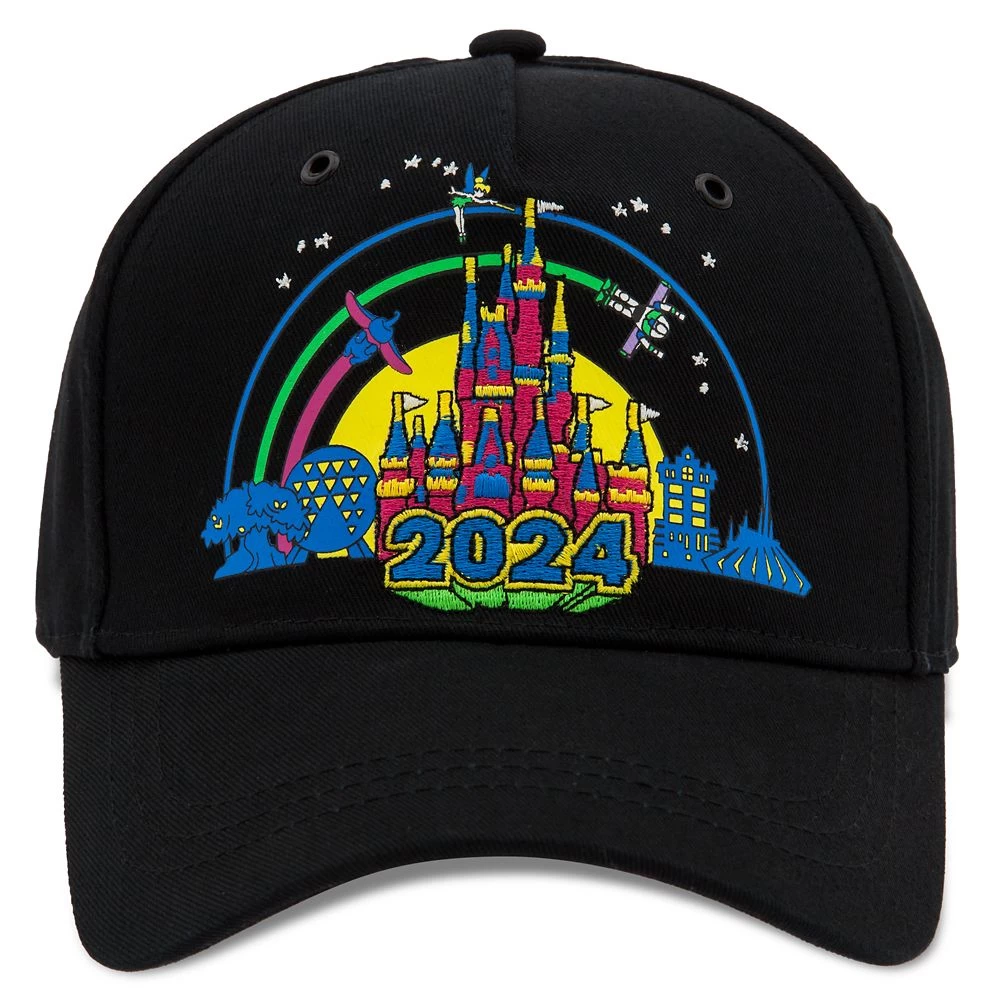 This contemporary baseball cap from The Most Magical Place on Earth is a headwear home run. With Cinderella Castle and 2024 banner on front, plus Walt Disney World logo label on back, it’s sure to be a hit with fans in the stands.