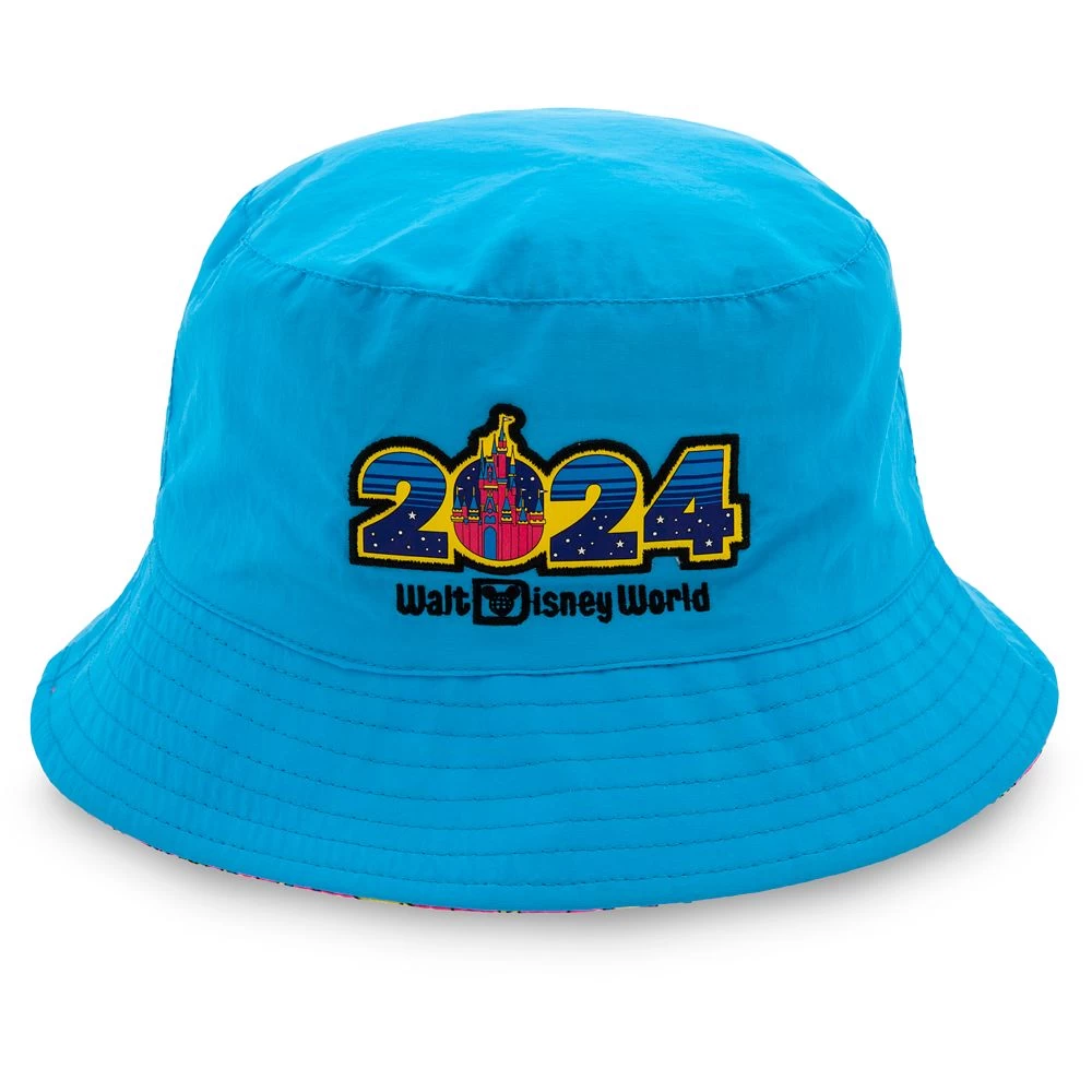 Flash forward to good times at The Most Magical Place on Earth in this floppy bucket hat with embroidered Walt Disney World logo and 2024 text appliquΓ© on top side plus a wild allover dated print pattern on the reverse.