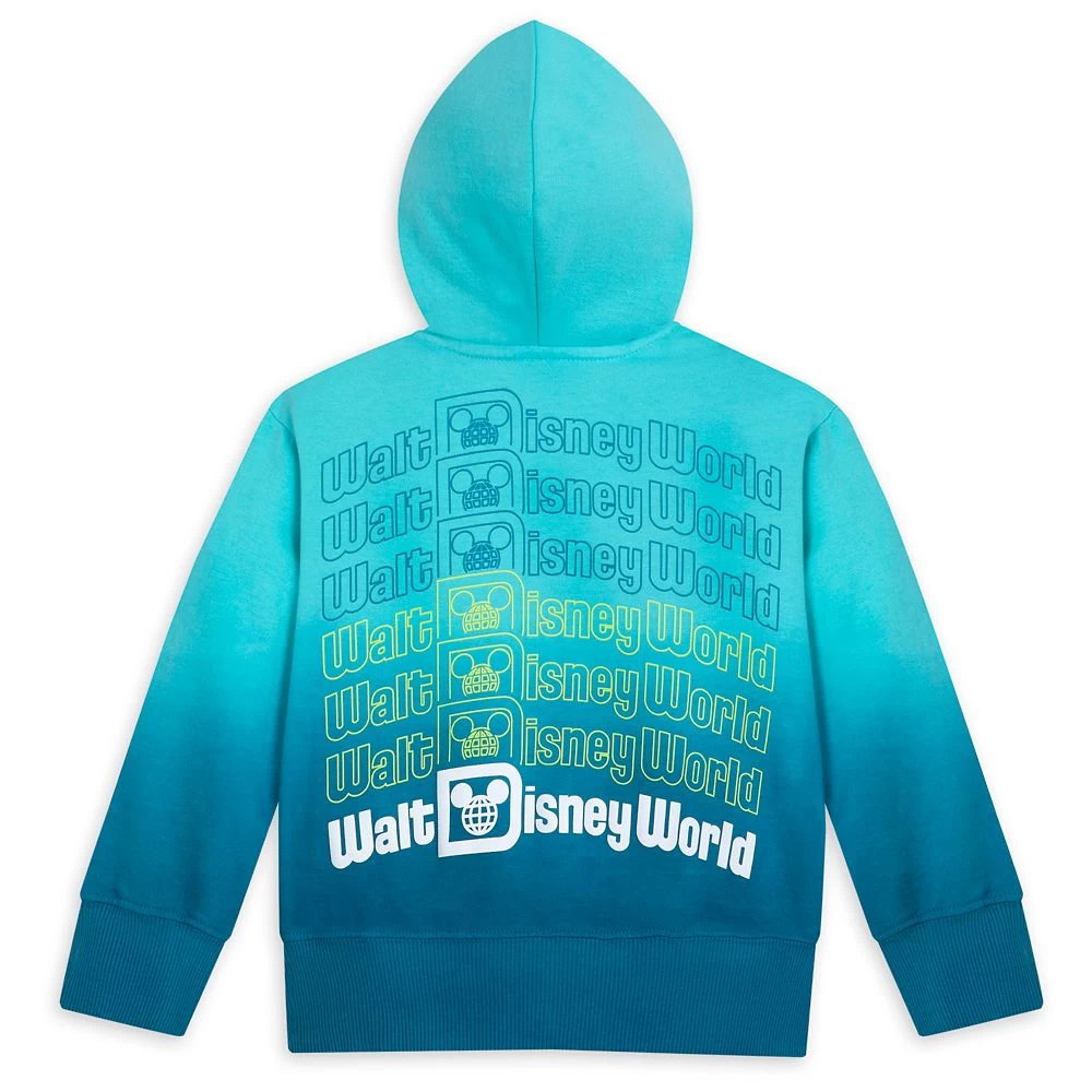 Some things are worth repeating like the name of your magical place. This Walt Disney World zip hoodie features a repeat pattern of the familiar logo on the back. Its ombre wash fades gradually from light to dark and includes Cinderella Castle on the front with the classic Walt Disney World ”D”.
